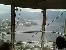 The Tenjō-Yama Park Mt. Kachi Kachi Ropeway (天上山公園カチカチ山ロープウェイ, Tenjōyama Kōen Kachikachiyama Rōpuwei), officially the Lake Kawaguchi Mt. Tenjō Ropeway (河口湖天上山ロープウェイ, Kawaguchiko Tenjōyama Rōpuwei), is a Japanese aerial lift line in Fujikawaguchiko, Yamanashi, operated by Fuji Kyuko. Opened in 1959, the line climbs Mount Tenjō from the shores of Lake Kawaguchi, one of the Fuji Five Lakes. The line name comes from Kachi-kachi Yama (lit. "Mt. Kachikachi"), a folktale which took place on the mountain. The observatory has a view of the lake, as well as Aokigahara forest, and Mount Fuji.