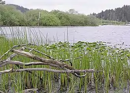 In the early 20th century, Tenmile Lake was a cold-water fishery that supported large populations of coastal cutthroat trout, salmon, and the sea-run steelhead.[1] However, the watershed was gradually altered by logging, farming, stream channeling, and the introduction of invasive fish species such as yellow perch and brown bullhead.[1] Attempts to restore the cold-water fishery, including poisoning Eel, Tenmile and North Tenmile lakes with rotenone in 1968, all failed. Bluegill and largemouth bass are among species that have since dominated the fishery.[1]