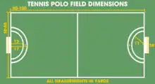 Tennis polo (or toccer) is a field sport where two teams of ten players (nine field players and one goalkeeper) use a tennis ball to score goals by throwing the ball into a goal defended by a keeper who holds a racket. Tennis polo shares elements of sports such as field handball, hurling, football, and lacrosse. The game may also be played where all field players have racquets including the goalkeeper.