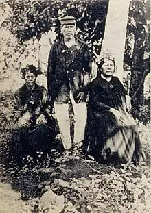 Bearing his rifle, the "'oporo 'ute'ute" or "red pepper",[30] Teraupo'o was able to muster a force of 800 men or nearly one third of the population of the island although Newbury noted that "hardly more than 359 Ra'iateans [were] under arms".[3][31] The followers of the rebel chief were referred to as the Teraupiste.[32] Teraupo'o's brother Hupe served as his généralissime or general-in-chief. The courageous chiefess Mai of Tevaitoa and her husband Moti Roi and the chief Faterehau of Opoa and his wife, a half-white woman, named Taupe allied themselves with the Teraupiste.[33][34] Foreign residents were also attracted to his cause. Jose Jordan, son of American settler and blacksmith Joseph Jordan, was a partisan of Teraupo'o, and was exiled for his involvement. The German G. Neuffer became an adopted son of Teraupo'o and supplied him with arms and funds.[35][15]