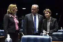 Tereza Cristina Corrêa da Costa Dias (born 6 July 1954) is a Brazilian entrepreneur, agronomic engineer, and politician, member of the Progressistas (PP). She has been a Federal Deputy since 2015, representing the state of Mato Grosso do Sul, and is a member of the congressional ruralist front.[1] In November 2018, Jair Bolsonaro, as president-elect, announced that she would be Minister of Agriculture, Livestock and Supply and the first woman to compose the new government, which was inaugurated on 1 January 2019.[2] She was appointed by a group of 20 members of the Farming Parliamentary Front (FPA). In the 2022 elections, Cristina was elected Senator for the state of Mato Grosso do Sul, having resigned from the Cabinet of Jair Bolsonaro.[3]