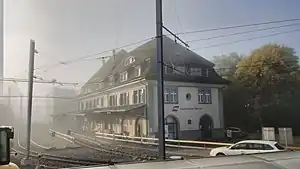 The Teufen AR railway station (German: Bahnhof Teufen) is a railway station in the municipality of Teufen, in the Swiss canton of Appenzell Ausserrhoden. It is located on the 1,000 mm (3 ft 3+3⁄8 in) metre gauge Appenzell–St. Gallen–Trogen line of Appenzell Railways, and is served by local trains only.[2][3]