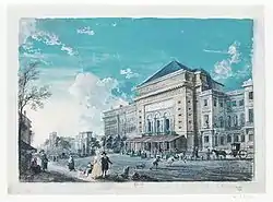 It was first built very rapidly in 1781 under the direction of Nicolas Lenoir (1726–1810) to house the Paris Opéra, whose previous home, the second Salle du Palais-Royal, had burned down on 8 June 1781. The new theatre had a capacity of about 2,000 spectators and included a parterre with the lowest-priced tickets sold only to males who stood throughout the performances, an amphitheatre, and four rows of boxes. The Opéra used the theatre from 27 October 1781 until August 1794.[1][2]