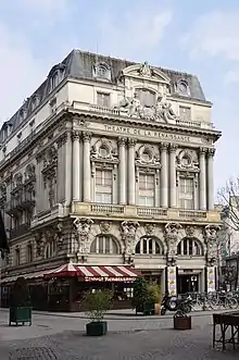 The current company was founded in 1873, and its much smaller theatre (pictured) was built that same year next to the Porte Saint-Martin at 20 boulevard Saint-Martin, in the 10th arrondissement. Besides performances of musical theatre, Feydeau's farces were first produced in this theatre, and plays by Victorien Sardou. Among the actors who triumphed there were Sarah Bernhardt, Eleonora Duse, and Raimu, later Agnès Jaoui and Jean-Pierre Bacri.