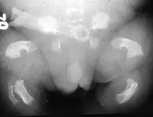 | Radiogram of a baby born with thanatophoric dwarfism | |