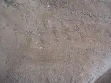The Tharia Cave paintings are prehistoric paintings which have been discovered in March 2015 at Tharia Cave, the most ancient rock shelter in Pabu Mountain, located near the Qili village, Chatoka Bhit , Pallimas valley, Tahseel Wadh, Khuzdar District of Balochistan, a western province of Pakistan. The paintings represented on the rock shelter are divided into five panels. The Tharia Cave paintings show dancing men in a row and straight line, humped bulls and deer-like animals.[1][2] Most probably, the cave paintings belong to the Paleolithic period.[3]