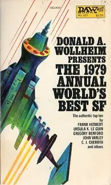 The 1979 Annual World's Best SF is an anthology of science fiction short stories edited by Donald A. Wollheim and Arthur W. Saha, the eighth volume in a series of nineteen. It was first published in paperback by DAW Books in May 1979. It was reissued by DAW in 1984 under the variant title Wollheim's World's Best SF: Series Eight, this time with cover art by Olivero Berni.