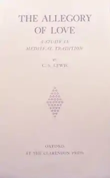 The Allegory of Love: A Study in Medieval Tradition (1936), by C. S. Lewis (ISBN 0192812203), is an exploration of the allegorical treatment of love in the Middle Ages and the Renaissance, which was published on 21 May 1936.[1]