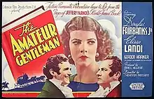 The Amateur Gentleman is a 1936 British drama film directed by Thornton Freeland and starring Douglas Fairbanks Jr., Elissa Landi, Gordon Harker and Margaret Lockwood, with music by Richard Addinsell.[1] It is based on the 1913 novel The Amateur Gentleman by Jeffery Farnol.[2] In an effort to prove his father's innocence of a charge of stealing, a young man disguises himself as a gentleman and travels to Regency London.[3]