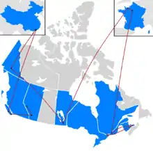 The Amazing Race Canada 2 is the second season of The Amazing Race Canada, a Canadian reality competition show based on the American series The Amazing Race. Hosted by Jon Montgomery, it featured eleven teams of two, each with a pre-existing relationship, in a race across Canada and the world. The grand prize included a CA$250,000 cash payout, two Chevrolet Silverado "High Country Edition" trucks, free gasoline for life from Petro-Canada, and the ability to fly for free anywhere for a year with Air Canada. This season visited seven provinces, one territory, and two additional countries and travelled over 40,000 kilometres (25,000 mi). Starting in Jasper National Park, racers travelled through Alberta, British Columbia, Hong Kong, Macau, the Yukon, Manitoba, France, Quebec, Prince Edward Island, New Brunswick, and Ontario before finishing in Ottawa. A new twist introduced in this season was international travel. The season premiered on CTV on July 8, 2014, with the season finale airing on September 21, 2014.