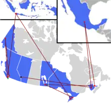 The Amazing Race Canada 6 (also known as The Amazing Race Canada: Heroes Edition)[1] is the sixth season of The Amazing Race Canada, a Canadian reality competition show based on the American series The Amazing Race. Hosted by Jon Montgomery, it featured ten teams of two, consisting of everyday Canadian heroes, in a race across Canada and the world.[2] The grand prize included a CA$250,000 cash payout, a trip for two around the world, and two 2018 Chevrolet Traverse Redlines.[2] This season visited six provinces, one territory, and two additional countries and travelled over 50,000 kilometres (31,000 mi) during eleven legs. Starting in Colwood, British Columbia, racers travelled through British Columbia, the Yukon, Indonesia, Ontario, Manitoba, Prince Edward Island, Mexico, New Brunswick, and Alberta before finishing in Banff, Alberta. New twists introduced in this season include the Blind Double U-Turn and U-Turns placed at Detour decision points. The season premiered on CTV on July 3, 2018,[3] with the season finale airing on September 11, 2018.