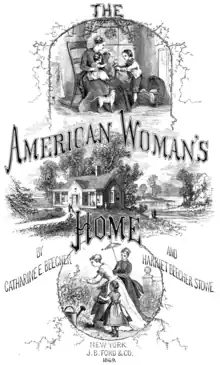 The American Woman's Home is a book published in 1869, co-authored by Catharine Beecher and her sister Harriet Beecher Stowe. It expands upon Catharine’s 1841 book, A Treatise on Domestic Economy, which aimed to codify women's housekeeping duties and draw attention to the importance of this labor. The American Woman's Home presents the sisters' views on domesticity and how these ideals shaped their vision of a proper American household. The American Woman's Home prioritizes necessity over excessive furnishing or decor. It also seeks to eliminate the distinction between private and public spaces by creating communal spaces and eliminating the need for servants. These features, the sisters believed, would allow women’s roles of housework and nurturing the family to thrive.[1] The book remains a foundational text in modern house design.[1]