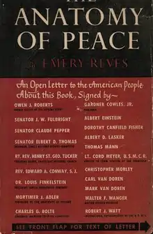 The Anatomy of Peace is a book by Emery Reves, first published in 1945.[1] It expressed the world federalist sentiments shared by Albert Einstein and many others in the late 1940s, in the period immediately following World War II.[2]