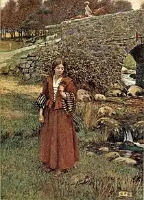 "She's dead, sir, long ago", the girl asserts sorrowfully. The youth is heartbroken and offhandedly pledges the girl his horse and tack, for he feels like nothing but departing into exile. She cries: "O stay, O stay, thou goodly youth! / She's alive, she is not dead; / Here she standeth by thy side, And is ready to be thy bride."