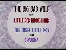 The Big Bad Wolf is an animated short released on April 13, 1934, by United Artists, produced by Walt Disney and directed by Burt Gillett as part of the Silly Symphony series.[1] Acting partly as a sequel to the wildly successful adaptation of The Three Little Pigs of the previous year (maintaining the previous film's title characters as well as its villain), this film also acts as an adaptation of the fairy-tale Little Red Riding Hood, with the Big Bad Wolf from 1933's Three Little Pigs acting as the adversary to Little Red Riding Hood and her grandmother.