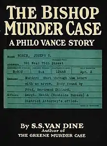 The Bishop Murder Case (1929) is the fourth in a series of mystery novels by S. S. Van Dine about fictional detective Philo Vance. The detective solves a mystery built around a nursery rhyme. The Bishop Murder Case is believed to be the first nursery-rhyme mystery book.