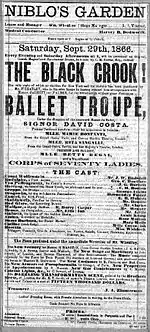 - ↑ "Broadway's first musical: The Black Crook". The Bowery Boys, November 26, 2007, accessed 1 March 2010; the Encyclopædia Britannica entry on the musical agrees (subscription required)