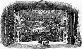 The same year that The Black Crook opened, The Black Domino/Between You, Me and the Post was the first show to call itself a "musical comedy".[2] In the late 1860s, as post-Civil War business boomed, there was a sharp increase in the number of working- and middle-class people in New York, and these more affluent people sought entertainment. Theaters became more popular, and Niblo's Garden, which had formerly hosted opera, began to offer light comedy. The Black Crook was followed by The White Fawn (1868), Le Barbe Blue (1868) and Evangeline (1874).[11] An apparently similar show from six years earlier, The Seven Sisters (1860), which also had an unusually long run of 253 performances, is now lost and forgotten. It also included special effects and scene changes. Gänzl gives The Naiad Queen (1841) as an example of an earlier musical, concluding that it was only The Black Crook's long run that gave it a reputation as the "first" musical.[10] Theatre historian John Kenrick suggests that The Black Crook's greater success, compared with earlier shows, resulted from changes brought about by the Civil War: first, respectable women, having had to work during the war, no longer felt tied to their homes and could attend the theatre, although many did so heavily veiled. This substantially increased the potential audience for popular entertainment. Second, America's railroad system had improved during the war, making it feasible for large productions to tour.[11]