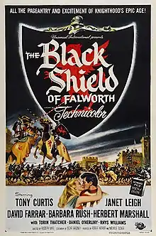 The Black Shield of Falworth is a 1954 American Technicolor film from Universal-International, produced by Robert Arthur and Melville Tucker and directed by Rudolph Maté. It stars Tony Curtis, Janet Leigh, David Farrar, Herbert Marshall, and Torin Thatcher. The screenplay, set in Medieval England, was adapted by Oscar Brodney and is based on Howard Pyle's 1891 novel Men of Iron. The original music score was composed by Hans J. Salter although his name does not appear in the screen credits. The only musical notation is given as: "Music Supervision by Joseph Gershenson". Made Universal's music department head in 1940, Gershenson's name appeared on nearly every film made by that studio from 1949-1969.[1]