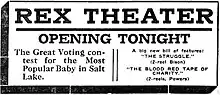 - 1 2 "(Crystal Theater Ad)". The Evening Gazette (Cedar Rapids, Iowa). September 26, 1913. p. 11. Retrieved September 12, 2014 – via Newspapers.com.