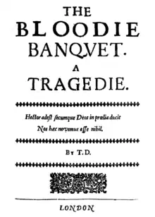 The Bloody Banquet[1] is an early 17th-century play, a revenge tragedy of uncertain date and authorship, attributed on its title page only to "T.D." It has attracted a substantial body of critical and scholarly commentary, chiefly for the challenging authorship problem it presents. It has been attributed to a collaboration between Thomas Dekker and Thomas Middleton.