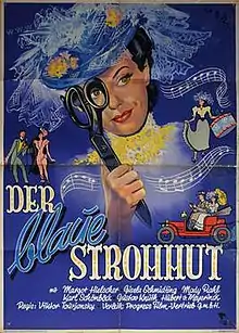 The Blue Straw Hat (German: Der blaue Strohhut) is a 1949 West German period comedy film directed by Viktor Tourjansky and starring Margot Hielscher, Karl Schönböck and Mady Rahl.[1] It was shot at the Bavaria Studios in Munich and on location in the city's Nymphenburg Palace Park. The film's sets were designed by the art director Max Mellin and Max Seefelder. It is based on the play of the same title by Friedrich Michael.