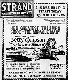 The Bonded Woman is an extant 1922 American silent drama film produced by Famous Players–Lasky and distributed by Paramount Pictures. It was directed by Phil Rosen and stars Betty Compson, John Bowers, and Richard Dix.