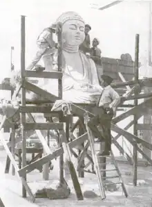 Crew members constructing a Buddha for the set of the movie.