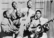Prior to the Cap-Tans, the group initially promoted themselves as the Buddies, with a line-up that featured Floyd Bennett (first tenor), Alfred "Buddy" Slaughter (second tenor), Lester Fountain (baritone, guitar) and Sherman Buckner (tenor lead). Bennett and Slaughter first teamed up in a post-World War II trio that attempted, but failed to negotiate a recording contract while in New York City. After the third member departed, Bennett and Slaughter recruited Fountain and Buckner to form the Buddies, which soon came under the management of Lillian Claiborne in 1948.[1] When Claiborne started arranging bookings for the Buddies, the group promoted itself as the Cap-Tans. Late in 1948, Claiborne convinced Harmon Bethea (bass) to leave the gospel group the Progressive Four Voices and join the Cap-Tans.[1][2]
