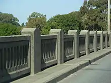Concrete railing along eastern side of roadway