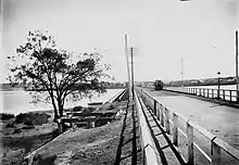 The second Causeway with a tram, viewed from the Perth side.
