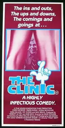 The Clinic is a 1982 Australian film produced by Robert Le Tet and Bob Weis and directed by David Stevens. The film is a comedy/drama describing a day in a Melbourne VD clinic focusing on four doctors and their patients.[2] It was distributed by Village Roadshow.