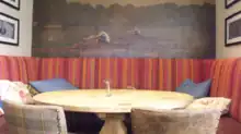 Interior of The Coat & Badge, with rowing artwork.
