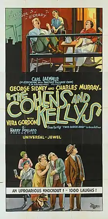 The Cohens and Kellys is a 1926 American silent comedy film directed by Harry A. Pollard and starring Charles Murray, George Sidney, Kate Price, and Jason Robards Sr. The film is the first of the Cohens and Kellys film serials. The film is perhaps best known today as the subject of Nichols v. Universal Pictures Corp.,[1] a copyright infringement case, in which Judge Learned Hand articulated the doctrine that copyright protection does not cover the characteristics of stock characters in a story.[2]