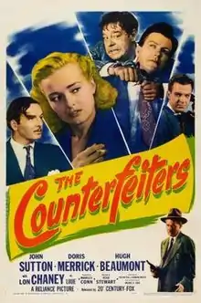 The Counterfeiters is a 1948 American crime film directed by Sam Newfield and written by Fred Myton and Barbara Worth. The film stars John Sutton, Doris Merrick, Hugh Beaumont, Lon Chaney Jr., George O'Hanlon and Robert Kent. The film was released on May 28, 1948, by 20th Century Fox.[1][2][3]