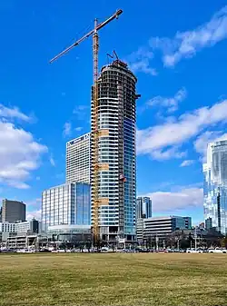 A groundbreaking event was held on June 16, 2021, with speeches by former Milwaukee Mayor Tom Barrett and Milwaukee County Executive David Crowley.[6] RINKA is serving as the lead architect on the project with J.H. Findorff as the General Contractor. The tower went vertical in Summer 2022 after several months of site prep and underground work. In February, 2022, the developer announced an intention to complete the project by the end of 2023.[7] When completed, the Couture will be the 4th tallest building in the city of Milwaukee and the tallest residential building in the state of Wisconsin.