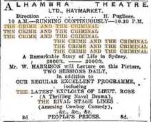 - ↑ "Alhambra Theatre, Ltd". Truth. No. 1074. New South Wales, Australia. 18 February 1912. p. 2. Retrieved 11 December 2023 – via National Library of Australia.