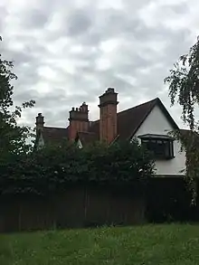 Collcutt also built another Grade II listed house on Totteridge Green, Fairspeir, and The Lynch House on Totteridge Common. Bridget Cherry, writing in the 1998 London: North edition of the Pevsner Architectural Guides, described The Croft as 'very picturesque' and 'a more relaxed version' of Richard Norman Shaw's 'Old English style'. The interior was described as having 'pretty plasterwork' and tiles by William De Morgan.[6] The 1977 edition of the Pevsner guides had described the Croft's design as "three ranges and a court, roughcast, with Tudor windows" likening it to the domestic architecture of C. F. A. Voysey.[2]
