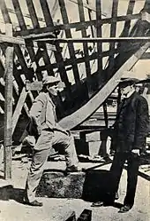 Jack London at the building of the Snark in 1906.
