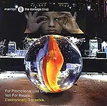"The Damage" is a song by British neo-prog band Marillion which appeared on their 13th studio album, Marbles, released in May 2004. In October 2005, a one-disc live album containing a subset of the full two-disc studio version entitled Marbles Live was released to retail shops in the UK. The recording was made at the London Astoria in July 2004. To promote this album, the track "The Damage" was made available as a digital download; it is thus the third song to be released from Marbles and the only track to be released from Marbles Live. Download-only releases were not yet eligible to chart on the UK Singles Chart at the time, but the single did reach #2 on the UK Official Download Chart. There was no physical release available, but a one-track CD version was sent out as a promo (source of cover art).[1]