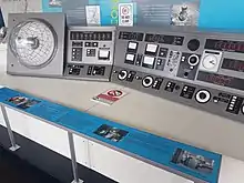 Specially constructed 'control console' as used on the set of the film. As on public display at the CSIRO Parkes Observatory visitors' centre, March 2020.