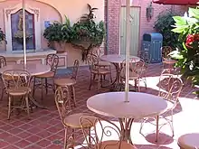 The Patio was the "hub" of the Gallery, with almost every room attached to it. The Patio contained tables and chairs, where guests could bring up food and have a meal away from the bustling crowds of the rest of the Park.