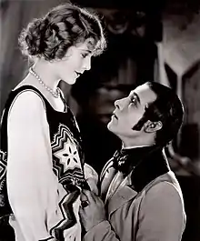 The Eagle is a 1925 American silent drama film directed by Clarence Brown and starring Rudolph Valentino, Vilma Bánky, and Louise Dresser.[1] Based on the posthumously published 1841 novel Dubrovsky by Alexander Pushkin,[2] the film is about a lieutenant in the Russian army who catches the eye of Czarina Catherine II. After he rejects her advances and flees, she puts out a warrant for his arrest, dead or alive. When he learns that his father has been persecuted and killed, he dons a black mask and becomes an outlaw. Black Eagle does not exist in the novel and was inspired by the performance of Douglas Fairbanks as Zorro in The Mark of Zorro.[3]