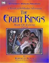 The Eight Kings is a scenario for character levels 9-12, fourth and last in the "Maze of Zayene" series, the sequel to Tower Chaos. The heroes discover there are actually eight King Orrs, all created and re-created by the Zayene.[1]