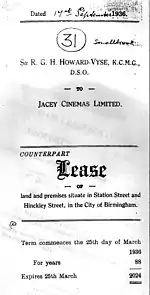 The Electric is a cinema in Birmingham, England. It opened in Station Street in 1909, showing its first silent film on 27 December of that year. It was the first cinema in Birmingham, and as of 2022 is the oldest known working cinema in the country. The Electric has two screens, both able to show digitally-shot films and one also able to show films in 35 mm.[1]