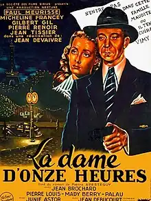 The Eleven O'Clock Woman (French: La dame d'onze heures) is a 1948 French mystery thriller film directed by Jean Devaivre and starring Paul Meurisse, Micheline Francey, Gilbert Gil and Pierre Renoir.[1] It is based on the 1938 novel of the same title by Pierre Apestéguy.[2] It was shot at the François 1er Studios in Paris and on location around the city. The film's sets were designed by the art director Robert Hubert.