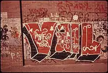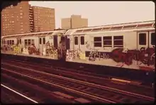 In June 1972, Mayor Lindsay announced an anti-graffiti program which included fining and jailing anyone caught with an open spray paint can near any public city building or facility.[9] Robert Laird, Lindsay's Assistant Press Secretary, admitted to a New York Times reporter that "the unsightly appearance of the subway and other public places created by the so-called graffiti artists has disturbed the Mayor greatly".[9] Lindsay appealed to citizens, "For heaven's sake, New Yorkers, come to the aid of your great city—defend it, support it and protect it!"[10]