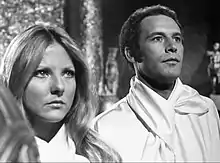 A prison craft from Earth's future crash lands in the Time Zone where the travelers are resting, releasing two prisoners, a convicted murderer and a thief, into a community of stranded humanoid aliens that does not comprehend violence or the concept of doors and locks. With a killer on the loose scheming to abscond with an orb that gives the aliens psychokinetic powers, Varian and the others must deal with him and protect the pacifists. Guest stars: Lew Ayres, Cheryl Ladd, Richard Jaeckel, Nicholas Hammond, and Gerald McRaney Note: The opening of this episode uses flying saucer footage from the opening of the 1967 series The Invaders as the saucer approaches Earth.[6] | |||