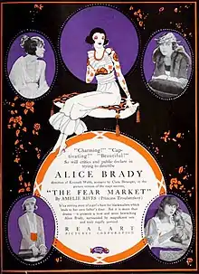The Fear Market is a 1920 American silent drama film directed by Kenneth Webb and written by Clara Beranger. The film stars Alice Brady, Frank Losee, Harry Mortimer, Richard Hatteras, Edith Stockton, and Bradley Barker. The film was released on January 25, 1920, by Realart Pictures Corporation.[1][2][3]
