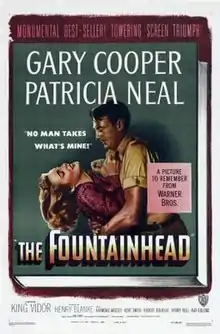 The Fountainhead is a 1949 American black-and-white drama film produced by Henry Blanke, directed by King Vidor, and starring Gary Cooper, Patricia Neal, Raymond Massey, Robert Douglas and Kent Smith. The film is based on the bestselling 1943 novel of the same name by Ayn Rand, who also wrote the adaptation. Although Rand's screenplay was used with minimal alterations, she later criticized the editing, production design and acting.[3]
